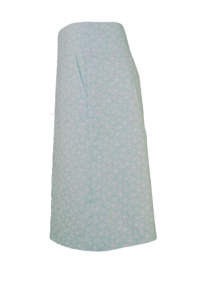 Mein Rock in A-Linie aus luftig-leichter Baumwolle. Der mintfarbene Stoff mit den zarten hellen Blümchen sorgt auch an heißen Tagen für Abkühlung.