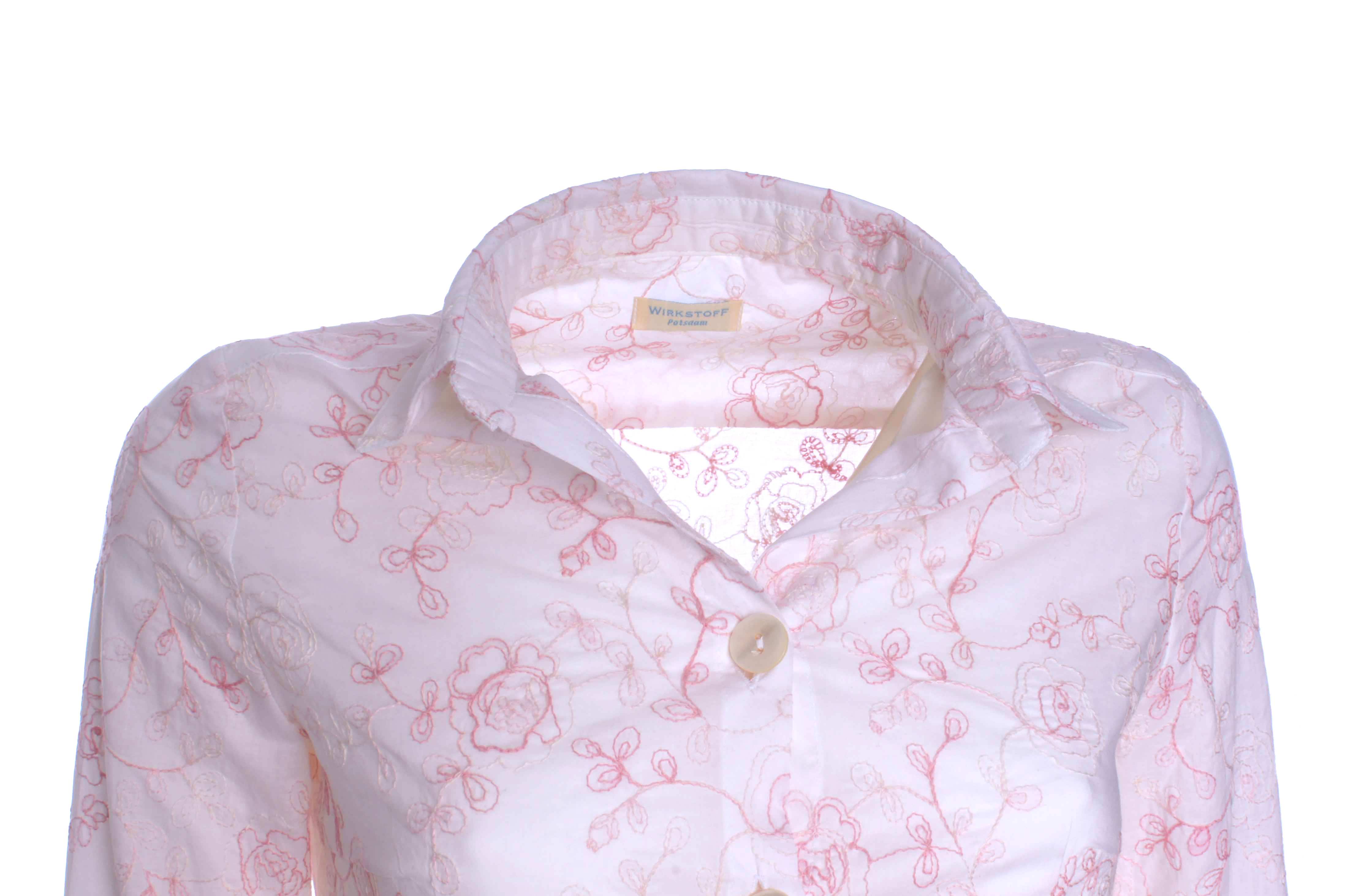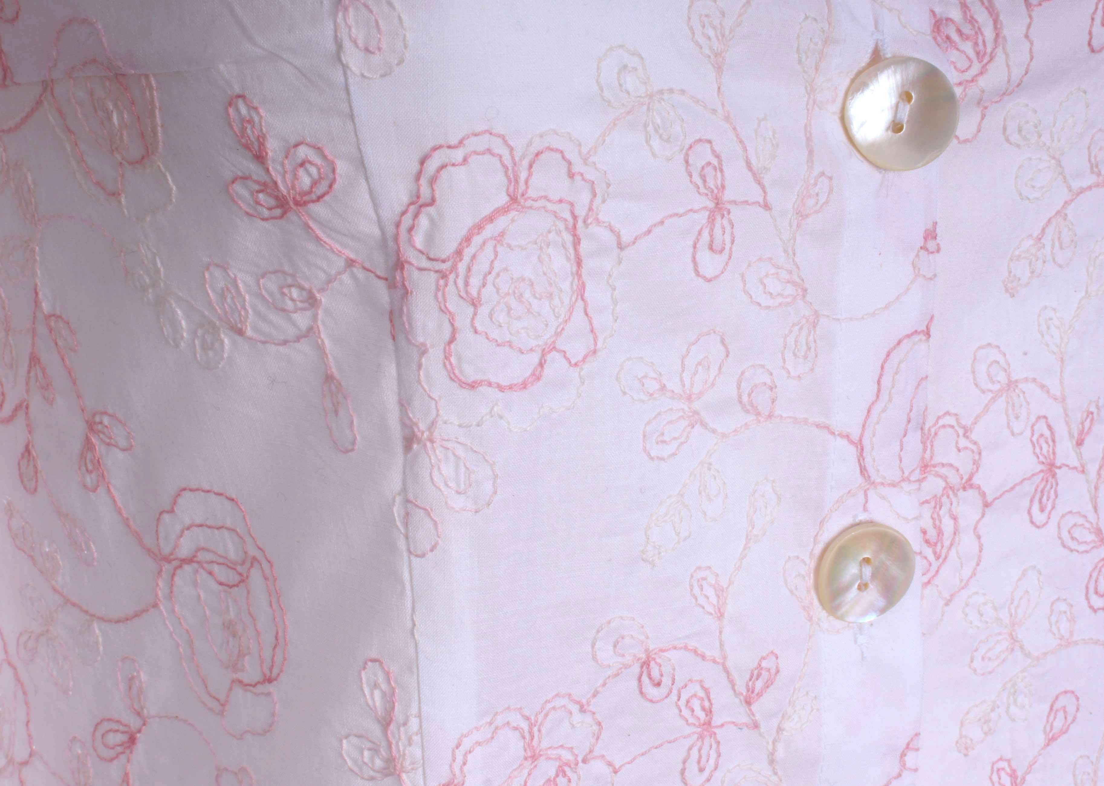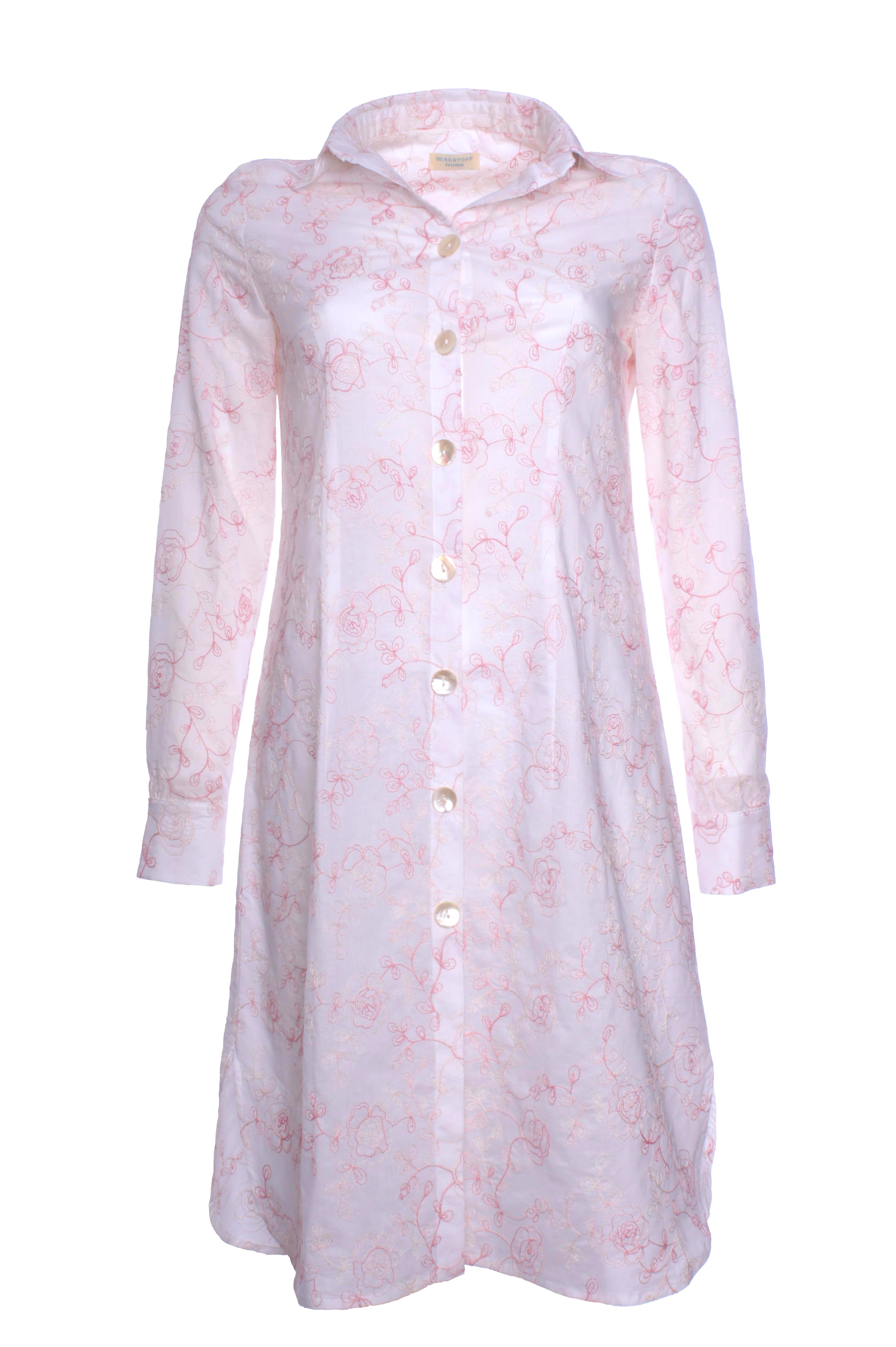 Gestickte Blumenranken in einem rosa Farbspiel auf zartem Baumwollstoff mit einem Hauch Transparenz: Dieses süße Hemdblusenkleid hat einen sexy Character!