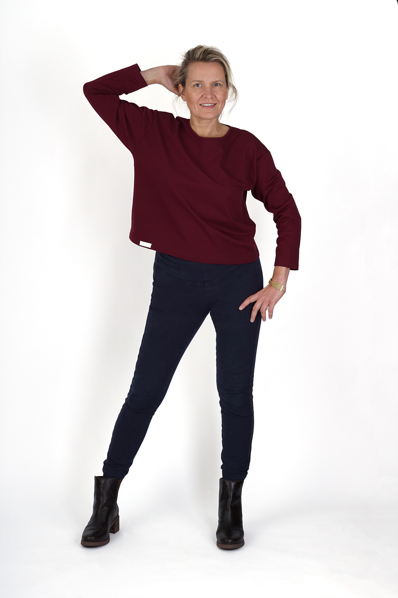 Der extra weite Wohlfühlpulli in Pflaume ist genau richtig für die Übergangszeit und an kühlen Tagen. Der Pulli ist aus warmer zertifizierter Bio-Baumwolle. Kuschelsweat ist, wie der Name treffend sagt, unendlich weich und wärmer als gewöhnlicher Sweatshirt-Stoff. Über meinen Kleidern, Röcken oder einer Jeans getragen sieht der Lieblingspullover meiner Kundinnen sehr lässig aus.