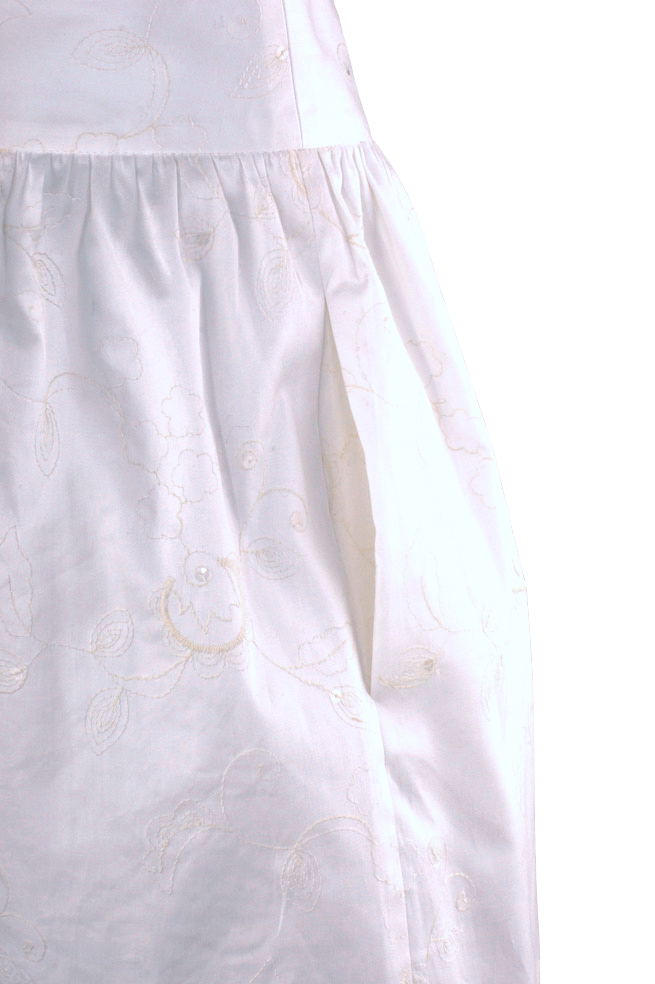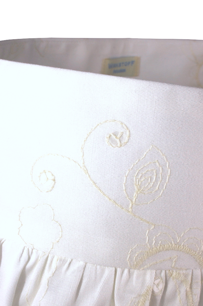 Besonders schön ist die zarte, fast unsichtbare Stickerei mit ein paar vereinzelten durchsichtigen Pailletten, die im Sonnenlicht zurückhaltend schillern.